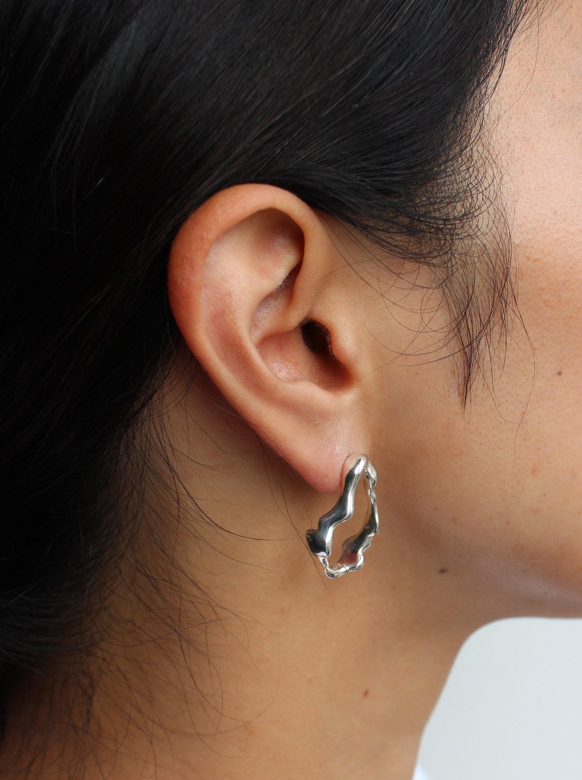'A bigger splash' collection was named after the iconic painting by David Hockney. A lazy carefree day at the pool. The pieces follow the movement of fluids. They are handmade in Antwerp, Belgium.